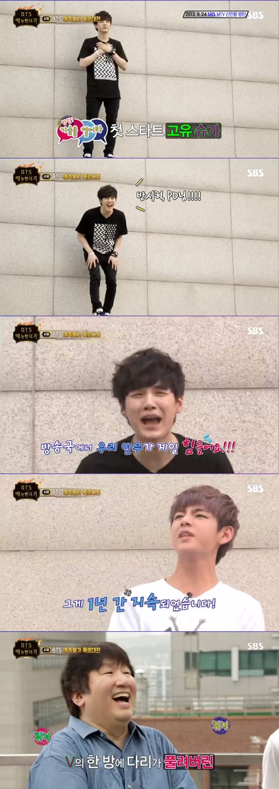 이를 들은 방시혁은 "들어보니까 춤 연습을 많이 늘려야 겠다"라고 반격했고, 이에 슈가는 "열심히 하겠다"고 공손한 태도로 입장을 바꿨다.