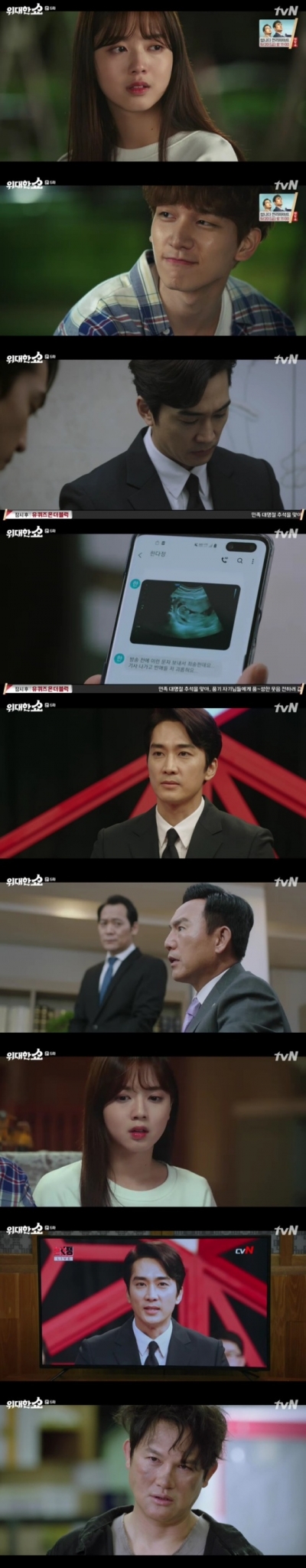 10일 오후 방송된 tvN 월화드라마 '위대한 쇼'(극본 설준석, 연출 신용휘·김정욱)에서는 한다정(노정의 분)의 출산을 허락하는 위대한(송승헌 분)과 최정우(한상혁 분)의 모습이 담겼다.