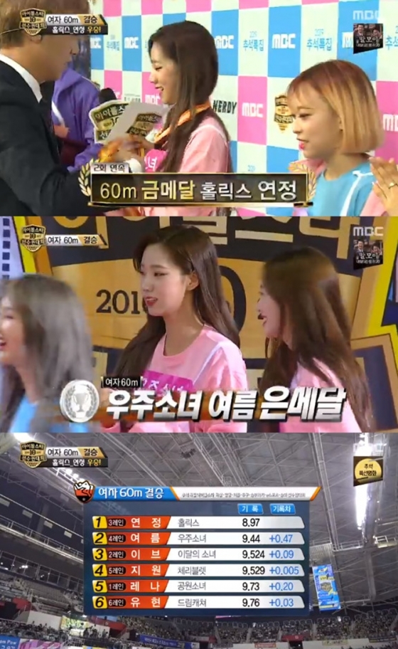 첫 번째 경기는 육상 달리기부문 여자 60m. 예선을 거쳐 결승에 올라온 선수는 유현(드림캐쳐), 지원(체리블렛), 여름(우주소녀), 연정(홀릭스), 이브(이달의 소녀), 레나(공원소녀)였다.