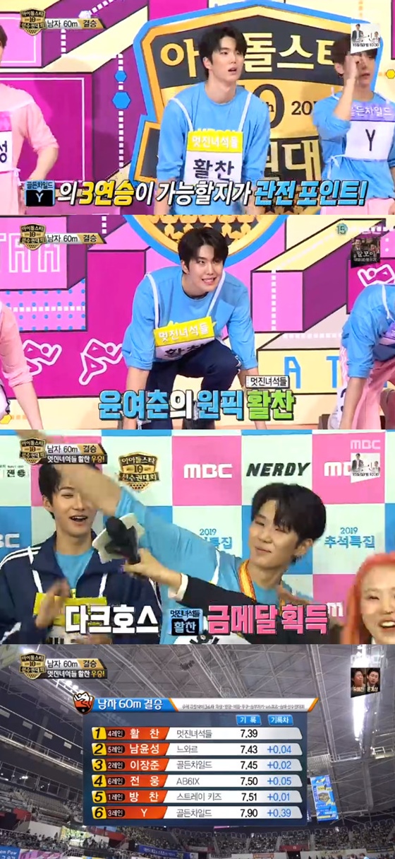 '2019 아육대'에서 그룹 멋진녀석들의 활찬과 홀릭스의 연정이 각각 남녀 육상 60m에서 금메달을 획득했다.