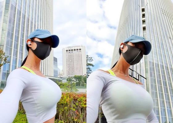 공개 된 사진 속 클라라는 마스크로 얼굴을 가리고 블루투스 이어폰을 낀 채로 조깅을 즐기고 있다.