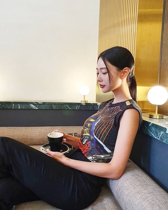 또 다른 사진 속 클라라는 커피를 즐기며 추석 여유를 만끽하고 있다.