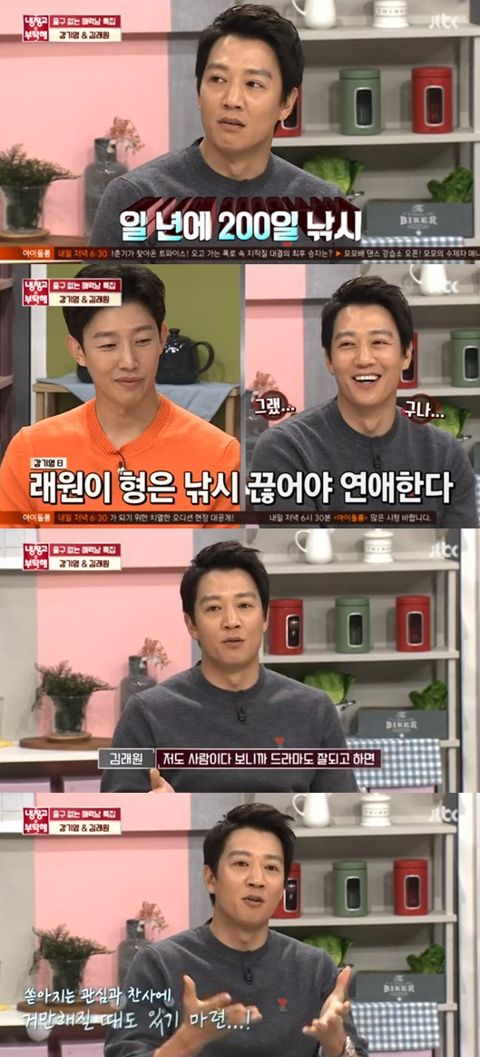 23일 오후 방송된 JTBC 예능프로그램 '냉장고를 부탁해'(이하 '냉부해')에서는 영화 '가장 보통의 연애'의 김래원이 강기영과 함께 게스트로 출연했다.
