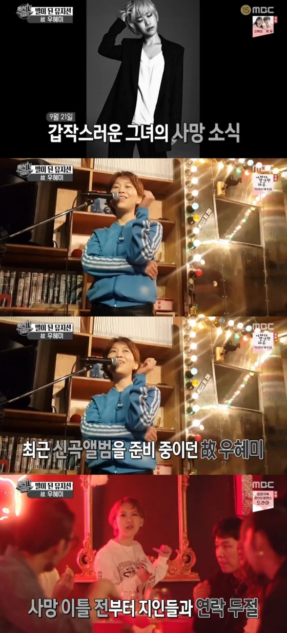 26일 오후 방송된 MBC 예능 프로그램 '섹션TV 연예통신'에서는 고인이 된 가수 우혜미에 대한 이야기를 다뤘다.