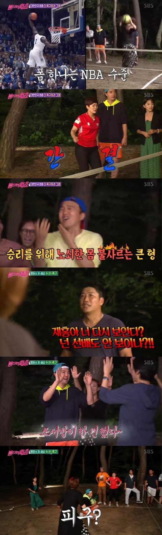 1일 오후 방송된 SBS 예능 프로그램 '불타는 청춘'에서는 혼돈의 족구를 하는 멤버들의 모습이 담겼다.