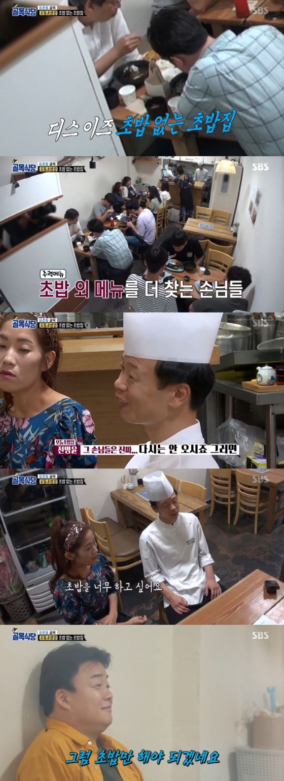 이때 백종원이 등장했다. 백종원은 "최종적으로 하고 싶으신게 뭐세요?"라고 물었다. 이에 사장님은 "저는 초밥 전문점으로 하고 싶다. 근데 주택가라 가족들이 오니까 돈가스, 알밥 같은 부수적인 것을 많이 하게 되니까"라며 상권 때문에 어쩔 수 없는 상황을 전했다.