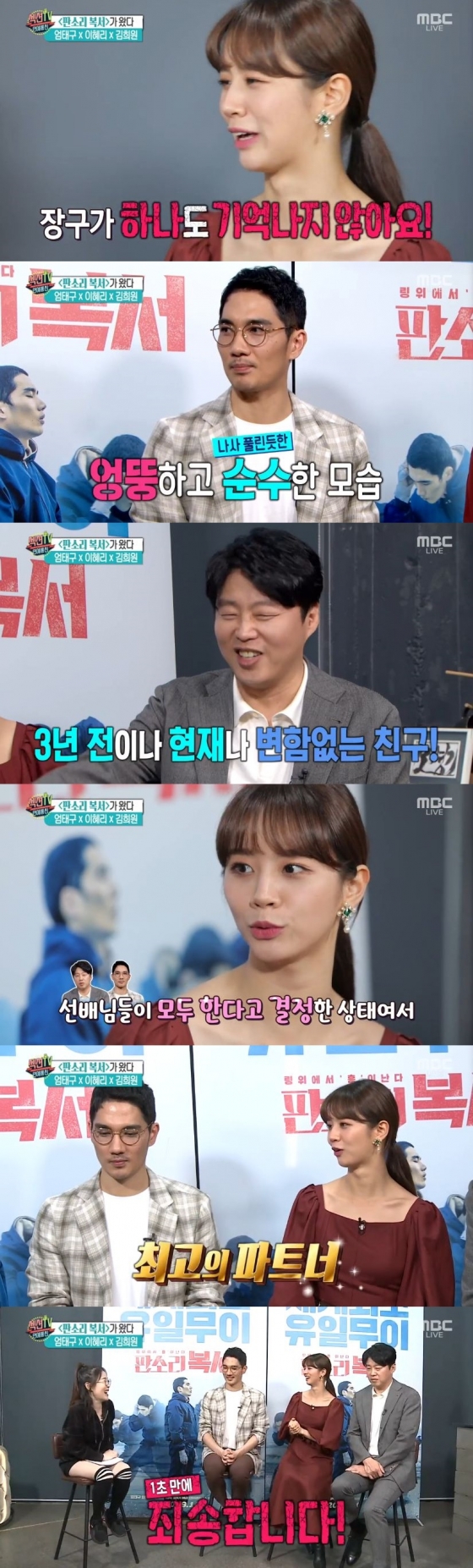 3일 오후 방송된 MBC 예능 프로그램 '섹션TV 연예통신'에서는 영화 '판소리 복서'로 돌아온 이혜리, 엄태구, 김희원과의 인터뷰가 공개됐다.