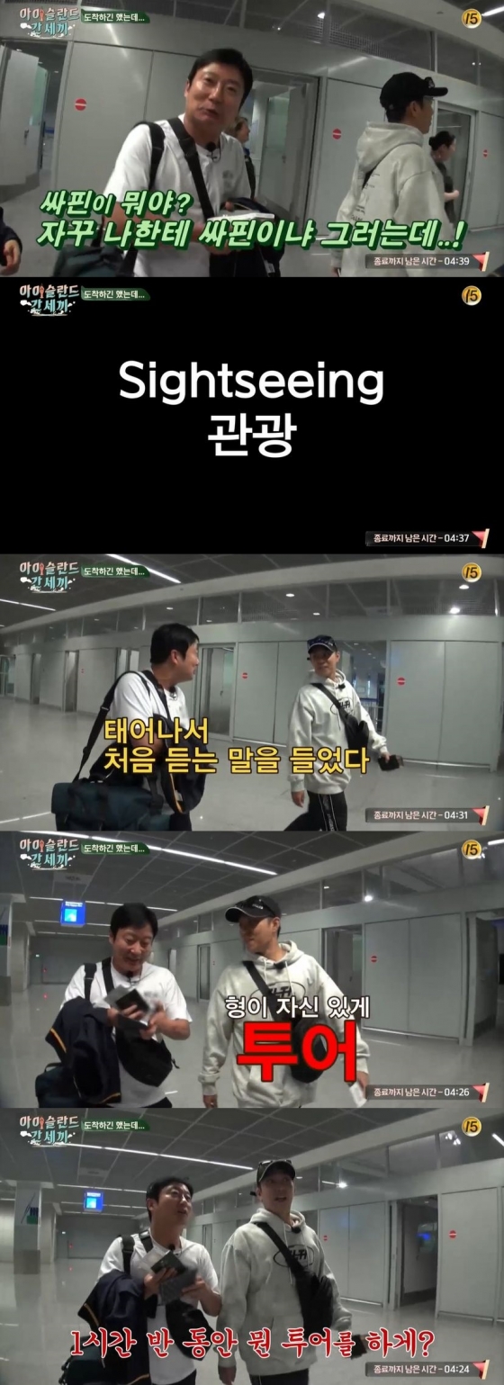 이날 이수근은 sightseeing(관광)이냐고 묻는 공항 직원의 답에 제대로 된 답을 하지 못했다. 이후 겨우 빠져나온 이수근은 "독한 사람한테 걸렸다. 싸핀이 뭐야 자꾸 나한테 싸핀이냐고 그러는데. 그냥 태어나서 처음 듣는 말을 들었다"라며 억울함을 토로했다.