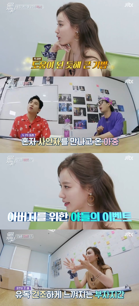 6일 오후 방송된 JTBC 예능 프로그램 '비밀 기획단'에서 아들의 아버지를 위한 고백을 도왔다. '비밀 기획단'은 시청자의 사연을 접수받아 인생에 단 하나뿐인 지상 최대의 고백쇼를 선보이는 프로그램이다.