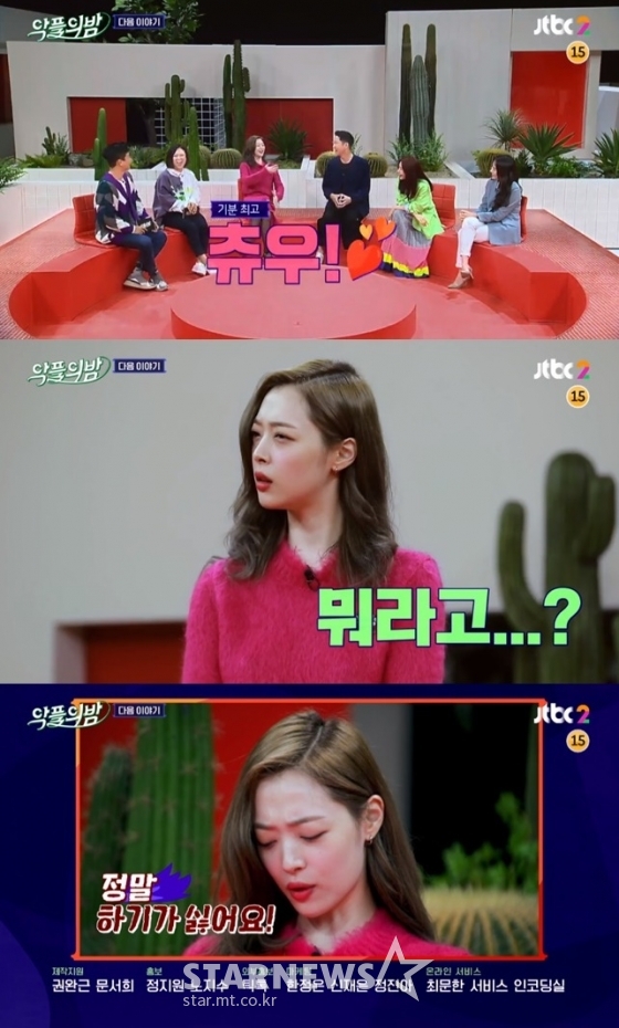 JTBC 예능프로그램 '악플의 밤' 측은 최근 18일 방송 예고편에서 MC 신동엽, 김숙, 설리, 김종민이 게스트 신주아, 곽정은과 만나는 모습이 전해졌다.