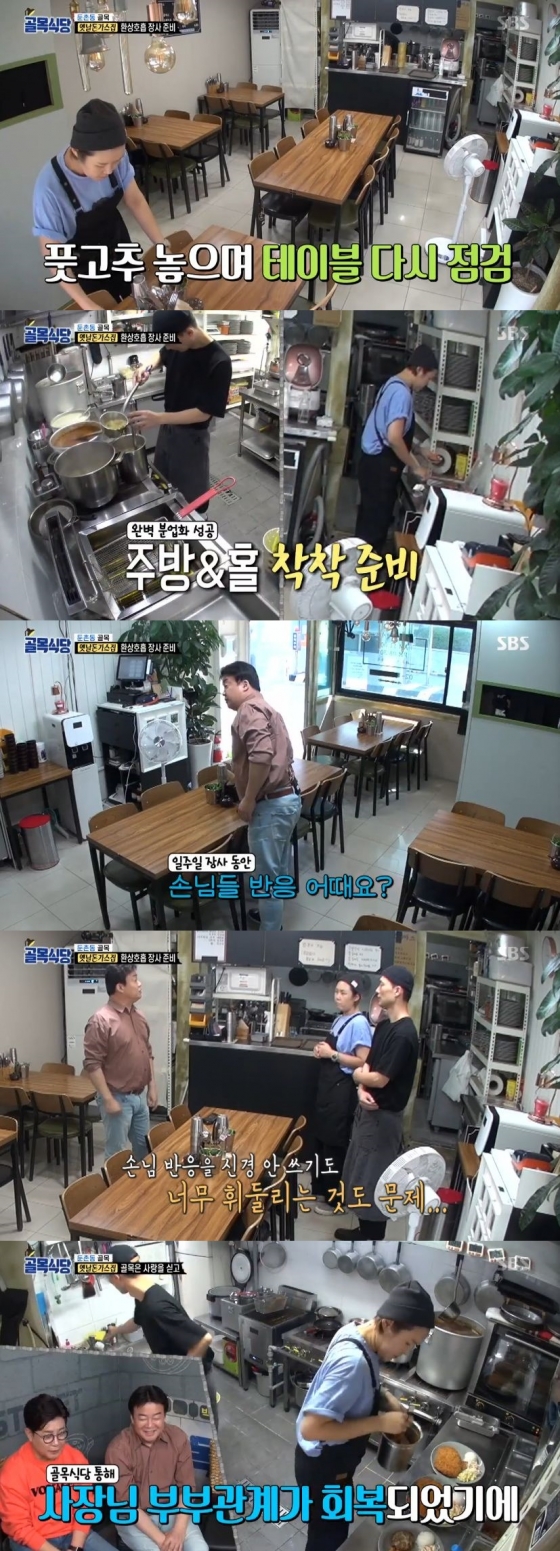 '백종원의 골목식당'에서 옛날 돈가스집 부부가 호전된 관계를 선보이며 장사 준비를 했다.