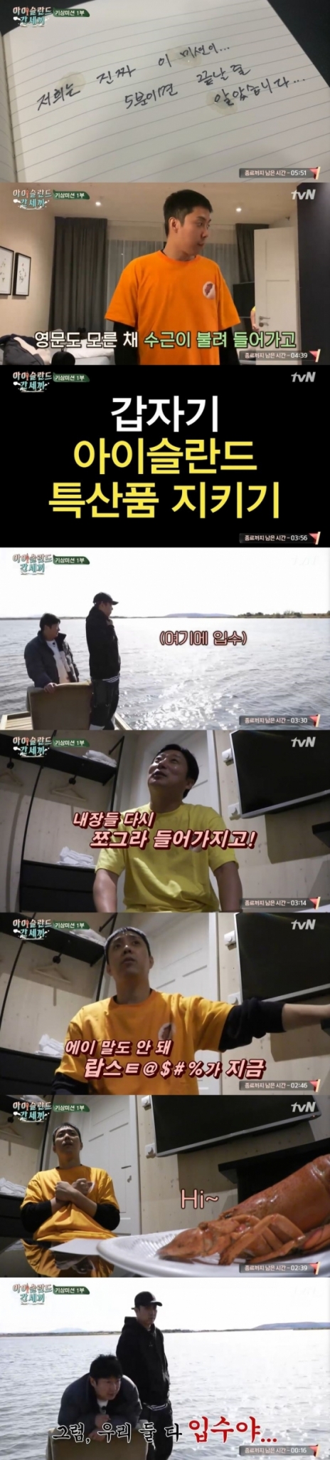 은지원이 고른 특산품은 랍스터였다. 은지원은 "말도 안 돼. 만지지도 못하는 걸 지키래. 살아날 거 같아 왠지. 죽은 거 맞지? 이렇게 통으로 주는 게 어딨어. 랍스터의 상징 집게만 줘요"라며 두려움을 표했다.