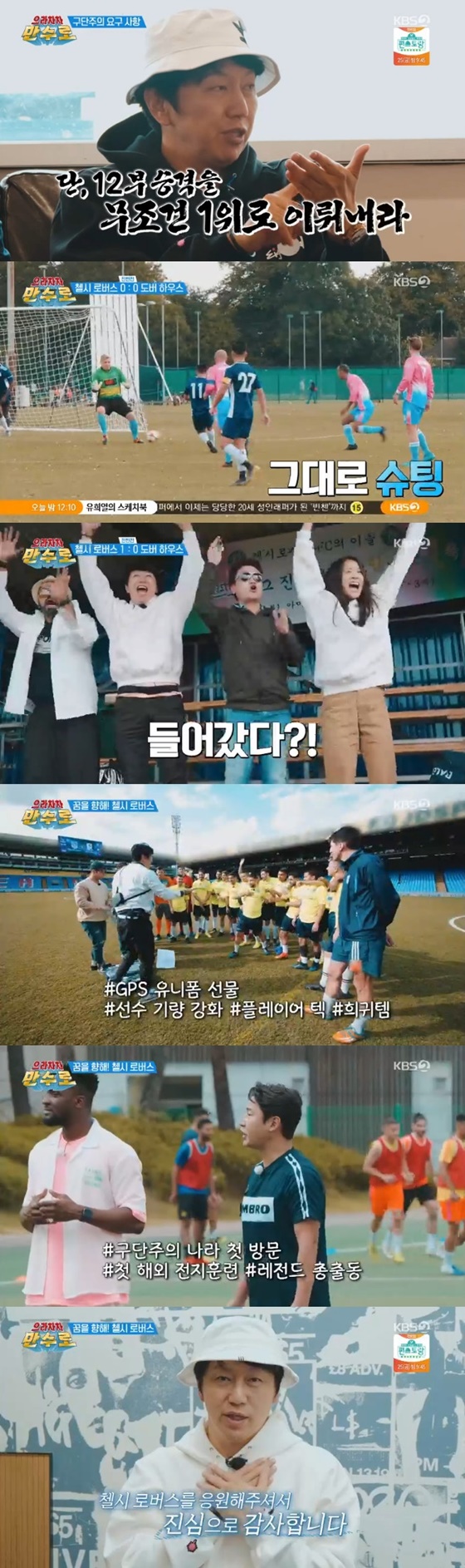 지난 18일 방송된 KBS 2TV 예능프로그램 '으라차차 만수로' 최종회에서는 영국 축구 13부 리그 첼시 로버스와 보드진의 마지막 이야기가 펼쳐졌다.