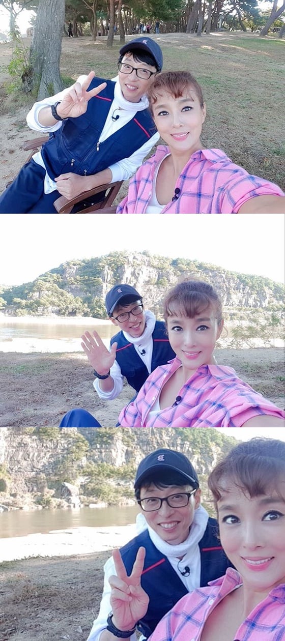 공개된 사진 속 김원희는 유재석과 함께 미소를 지으며 카메라를 응시하고 있다. 절친인 두 사람은 여전한 우정을 자랑했다.