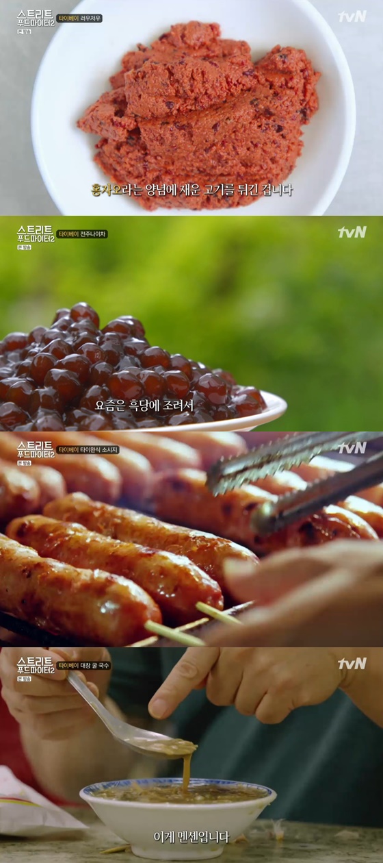 27일 오후 방송된 tvN 주말 예능프로그램 '스트리트 푸드파이터2'에서 백종원이 타이베이에 가 현지 음식을 즐기는 장면이 그려졌다. 백종원은 '족발국수', '굴전', '쩐주나이차(버블티)','루 러우 판', '타이완식 소시지','따창 으아 몐션(대창 굴 국수)' 등을 즐겼다.