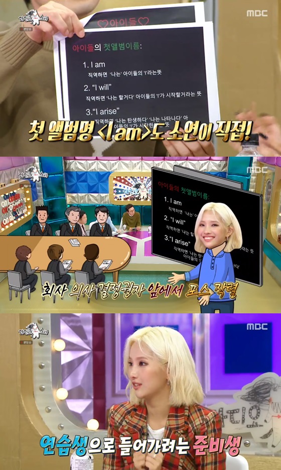 소연은 이어 "제가 작곡한 '라타타'는 블라인드 투표를 했는데 1등으로 타이틀 선정됐다. '한'은 반대가 많았는데 피피티 작성해서 설득에 성공했다"고 덧붙이며 MC들의 감탄을 자아냈다.