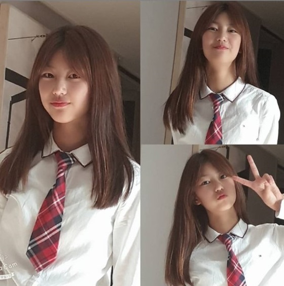 공개된 사진 속 송지아는 교복을 입고 브이를 그리거나 미소를 짓는 등 소녀다운 귀여움을 보이고 있다.