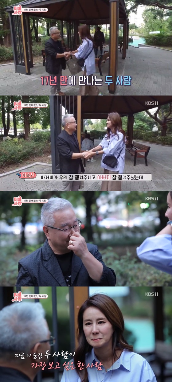 배우 이승신이 'TV는 사랑을 싣고'에서 새 아버지의 회사 후배인 김용구씨와 17년 만에 재회했다.