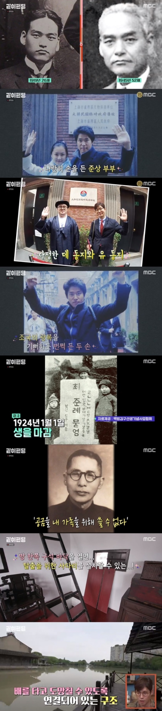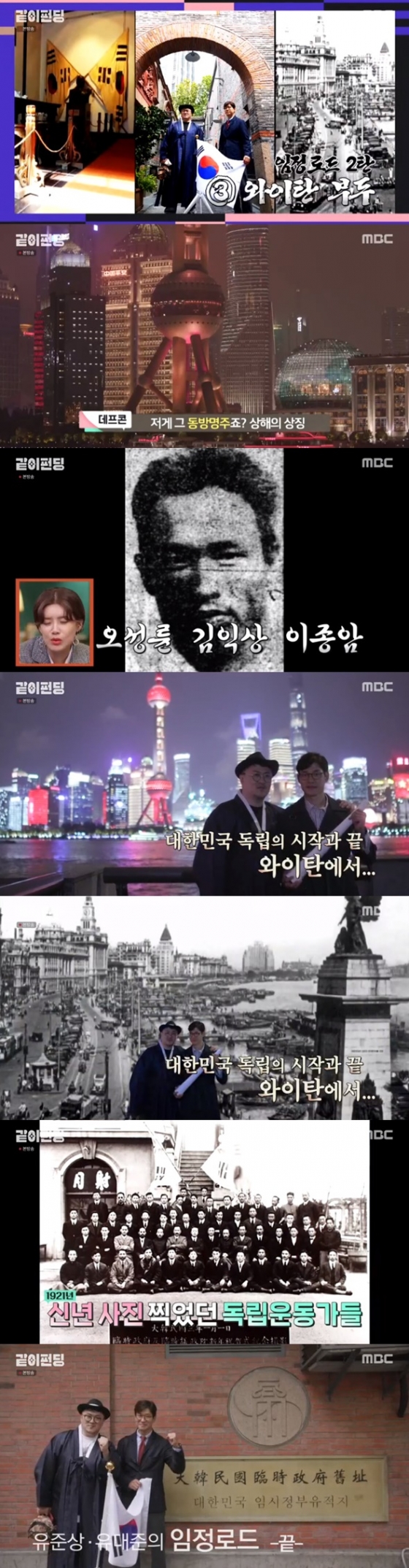 3일 오후 방송된 MBC 예능프로그램 '같이 펀딩'에서는 유준상과 데프콘의 '임정로드' 두 번째 편이 전해졌다. 유준상은 대한민국 임시정부 수립 100주년을 기념해 태극기함을 만들고 데프콘과 함께 상하이로 향했다.