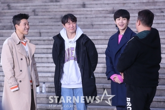 12일 오전 서울 여의도 KBS 본관에서 KBS 2TV '1박2일 시즌4'(이하 '1박2일')의 첫 촬영이 진행됐다. 연정훈, 김종민, 문세윤, 김선호, 딘딘, 라비(빅스) 등 시즌4 멤버들이 한 자리에 모였다.
