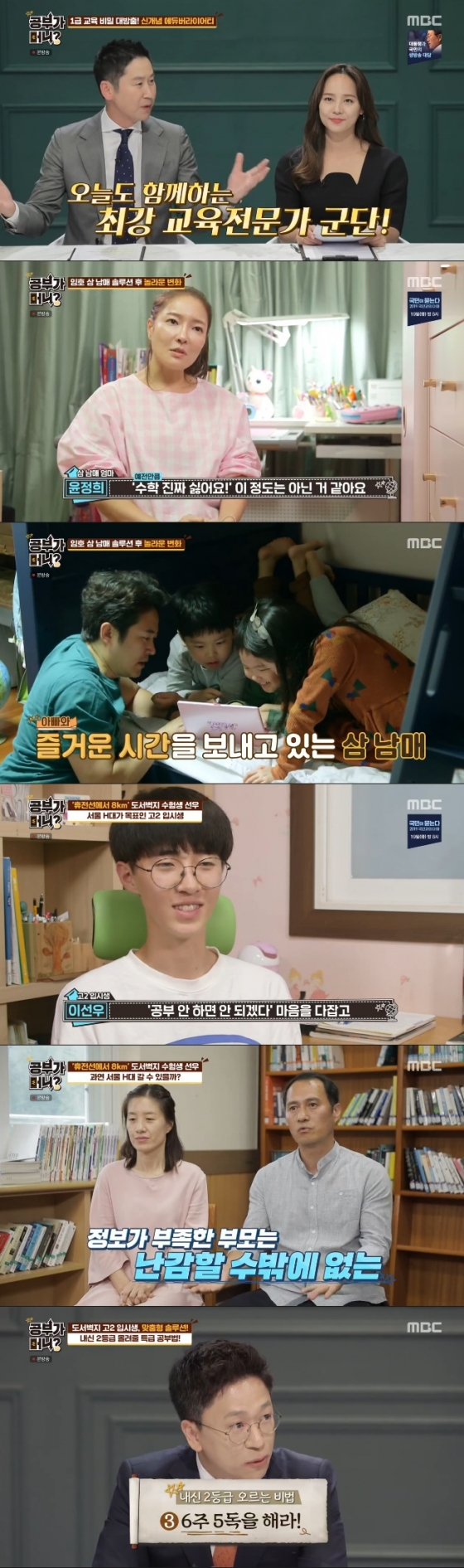 15일 방송된 MBC '공부가 머니?'에서는 배우 임호 가족과 도서벽지 학교를 다니고 있는 이선우 군의 가족이 출연, 다양한 고민과 다채로운 솔루션으로 큰 화제를 불러일으켰다.