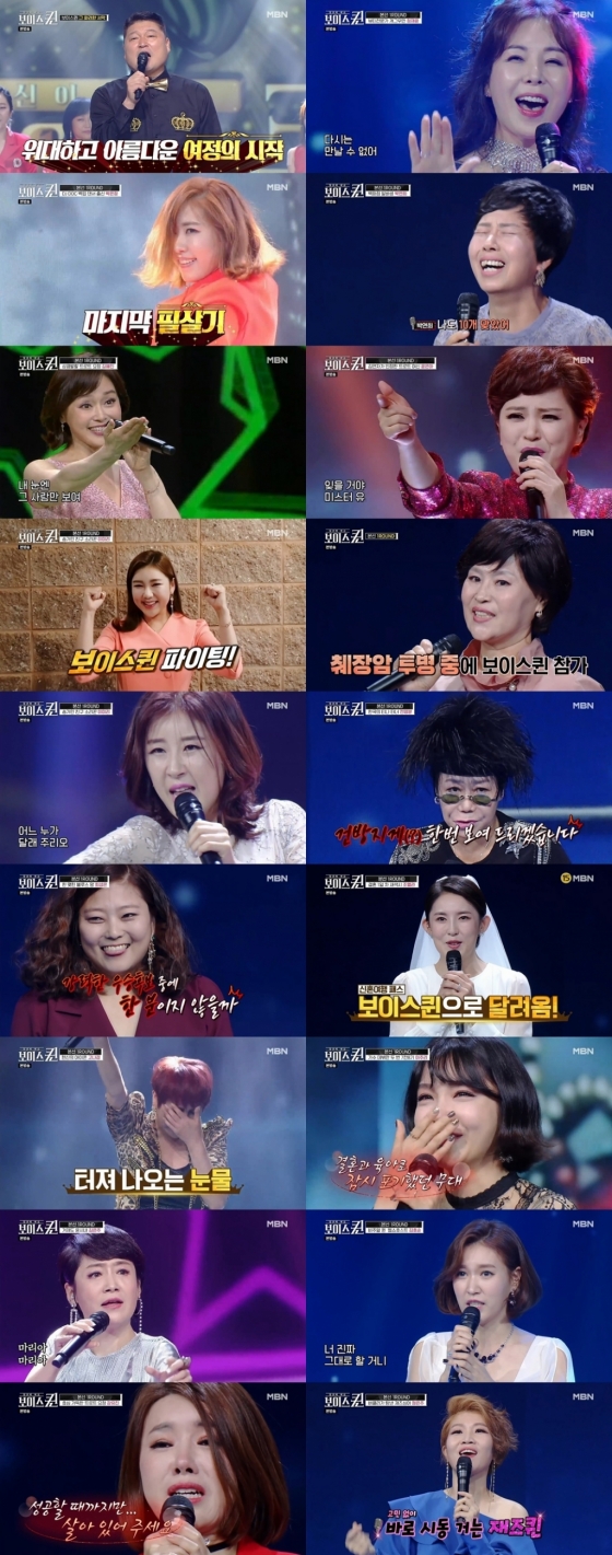 21일 MBN '당신이 바로 보이스퀸'(이하 '보이스퀸')이 드디어 첫 방송됐다. '보이스퀸'은 오직 주부만을 대상으로 한 음악 서바이벌. 주부들의 가창력은 물론 끼와 열정, 가슴 뭉클한 이야기까지 감탄, 눈물, 소름으로 꽉 채워진 시간이었다. 이에 '보이스퀸' 1회는 시청률 5.3%(닐슨코리아 유료방송 가구)를 나타낸 것. 이는 MBN 역대 첫 방송 최고 시청률에 해당한다.