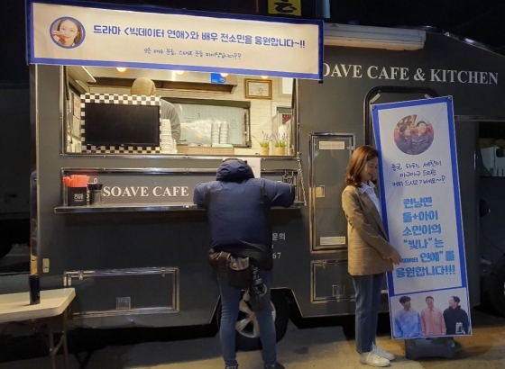 공개된 사진 속에는 커피차 앞에서 다소곳이 서 있는 전소민의 모습이 담겨있다. 해당 커피차 옆에는 "종국, 하하, 세찬이 마구마구 드리는 커피 드시고 가세요! 런닝맨 돌+아이 소민이의 '빛나'는 (빅데이터) 연애'를 응원합니다!"라는 문구가 적힌 배너가 놓여있어 전소민과의 훈훈한 관계를 짐작할 수 있다.