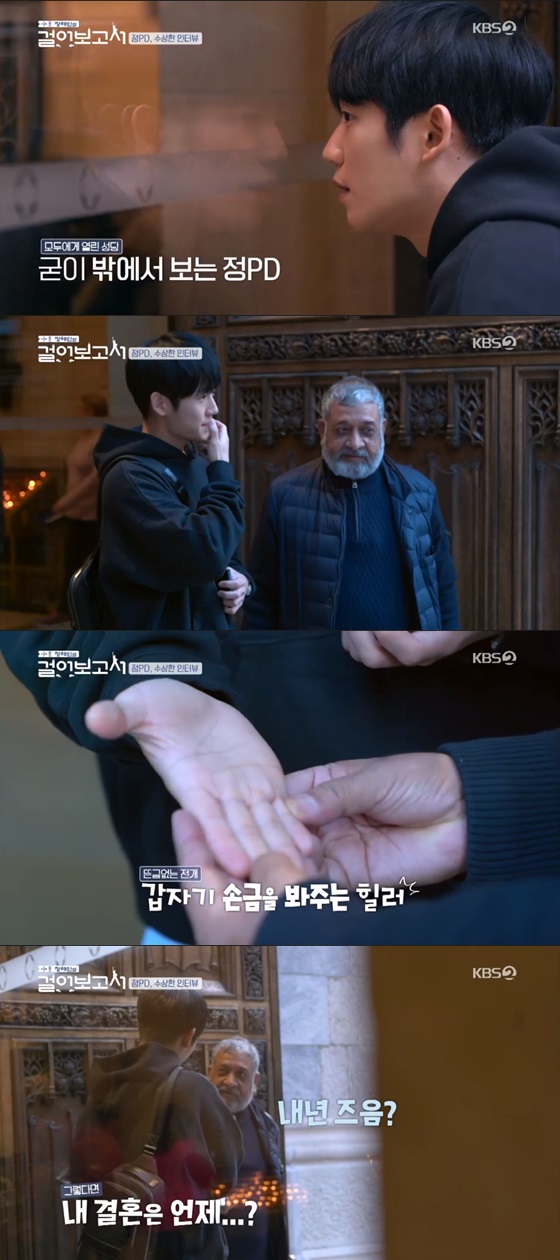 인도 출신이라는 할아버지는 정해인이 배우라는 말을 듣고 사진을 청했다. 그러더니 손금을 봐주고 "넌 결혼 후에 굉장한 성공을 할 거야. 여자가 너의 인생에 가장 중요한 역할을 할 거야. 내년에 결혼할 거야"라는 말을 남겨 정해인을 솔깃하게 했다.