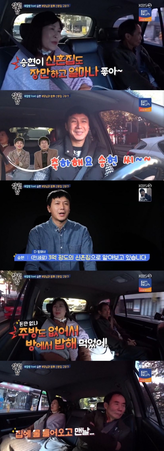 김승현은 부모님과 함께 신혼집을 보러갔다. 김승현 어머니는 "나는 이제 걱정이 없네. 웃을 일만 남았네. 승현이 신혼집도 장만하고 얼마나 좋아"라며 환하게 웃었다.