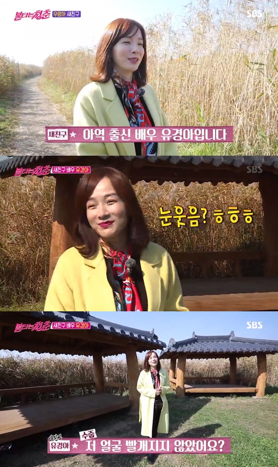 배우 유경아가 '불타는 청춘'에서 수줍음 많은 모습을 보였다.