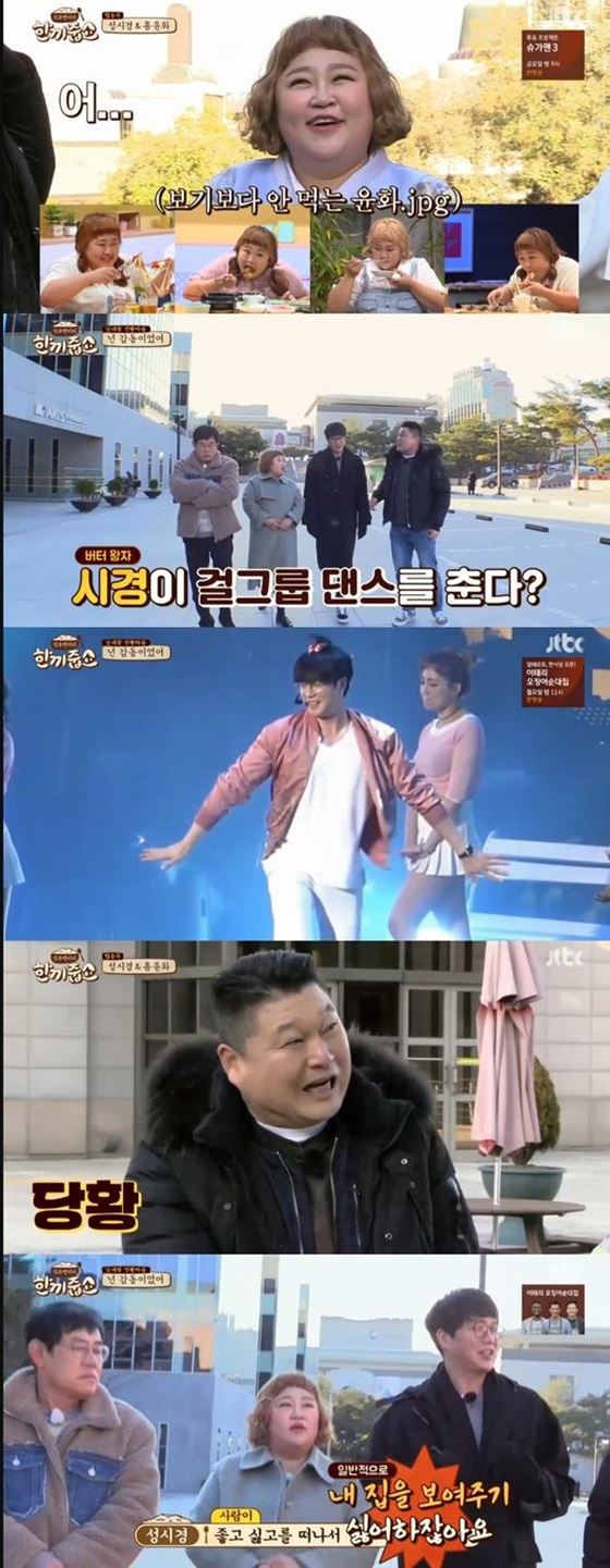 4일 오후 방송된 JTBC 예능프로그램 '한끼줍쇼'에서는 가수 성시경과 개그우먼 홍윤화가 게스트로 출연해 남태령 전원마을에서의 한 끼에 도전했다.