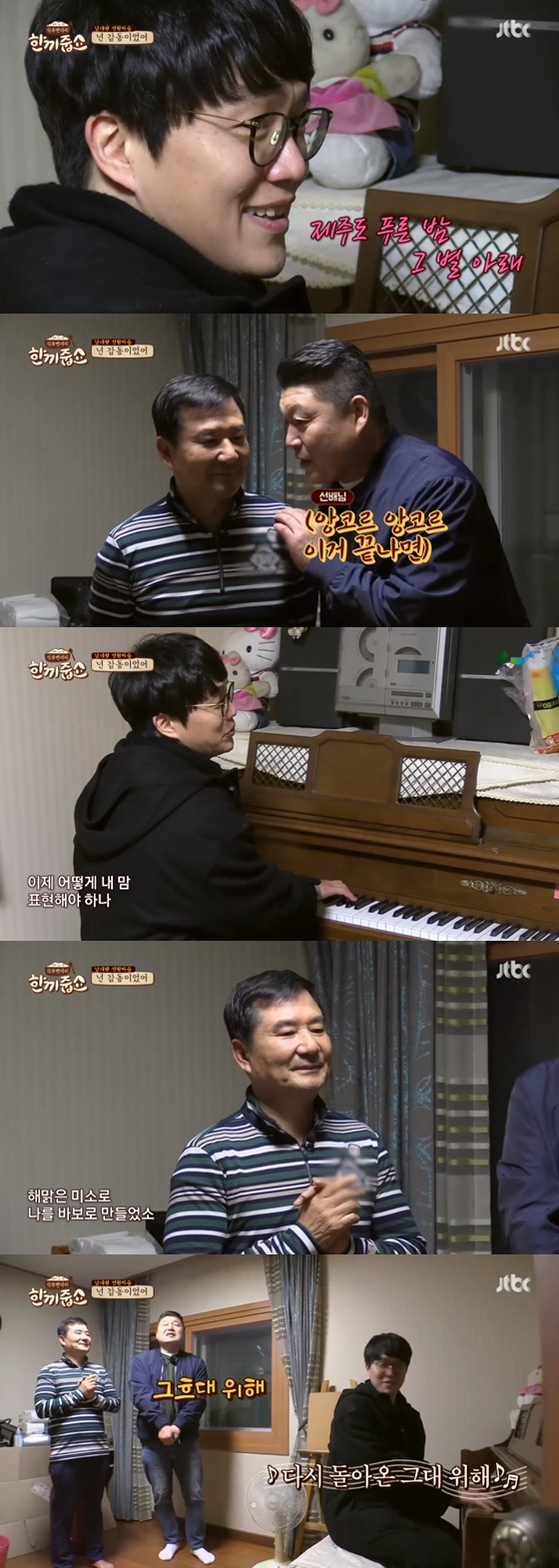 이날 방송에서 성시경은 '한끼' 집 입성에 성공한 후, 강호동의 요청에 피아노 연주를 시작했다. 집구경 도중 2층의 대학생 아들 방에서 피아노를 발견한 강호동은 "시경이 라이브가 끝내줍니다"라며 성시경을 피아노 앞으로 부른 것.
