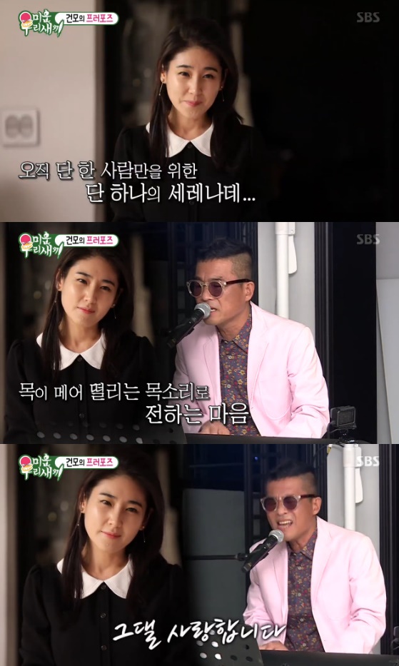 8일 오후 방송된 SBS 예능프로그램 '미운 우리 새끼'에서는 김건모가 예비신부한테 프러포즈하는 모습이 공개됐다.