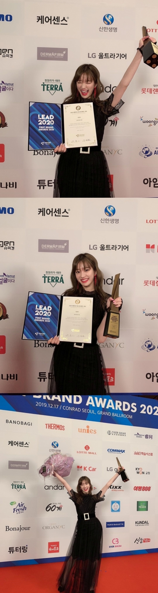 이유비는 지난 17일 자신의 인스타그램에 "감사합니다!!! #대한민국 퍼스트 브랜드 대상 #뷰티 아이콘 부문 수상했어요. 부끄. 소비자분들이 한 달 반 동안 직접 뽑아주신 상이라 더 기쁘네요. 너무 감사합니다. #개는 훌륭하다 #팔로우미 12 더욱더 사랑해주세요!! 2020년에는 연기 활동도 열심히 할게요. 코리엔 식구들 사랑해요 #firstbrandawards2020 #beautyicon #thankyouforvoting"라는 글과 함께 사진을 게재했다.