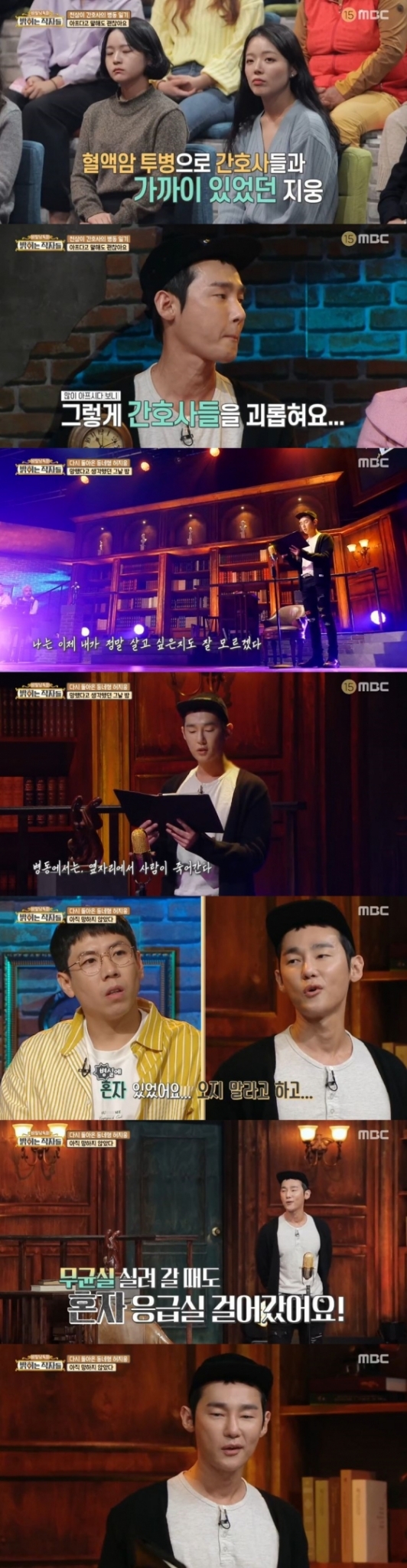 19일 오후 방송된 MBC 예능 프로그램 '비밀낭독회 - 밝히는 작자들'에서는 혈액암으로 투병하던 그 시절에 대해 털어놓는 허지웅의 모습이 담겼다.