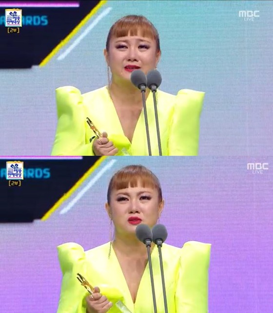 박나래는 "나도 사람이라 너무 받고 싶었다"며 통곡했다. 이어 "오늘 정말 너무나 멋지고 존경하는 선배님들과 대상 후보에 올랐다. 선배님들과 대상 후보에 서있는데, 이영자 선배님이 '어깨 피고 당당하라'고 말했다. 재석 선배도 '대상 받으면 좋겠다'고 했다. 현무 오빠도 '올해는 네가 받았으면 좋겠다'고 했다"며 감사함을 전했다.