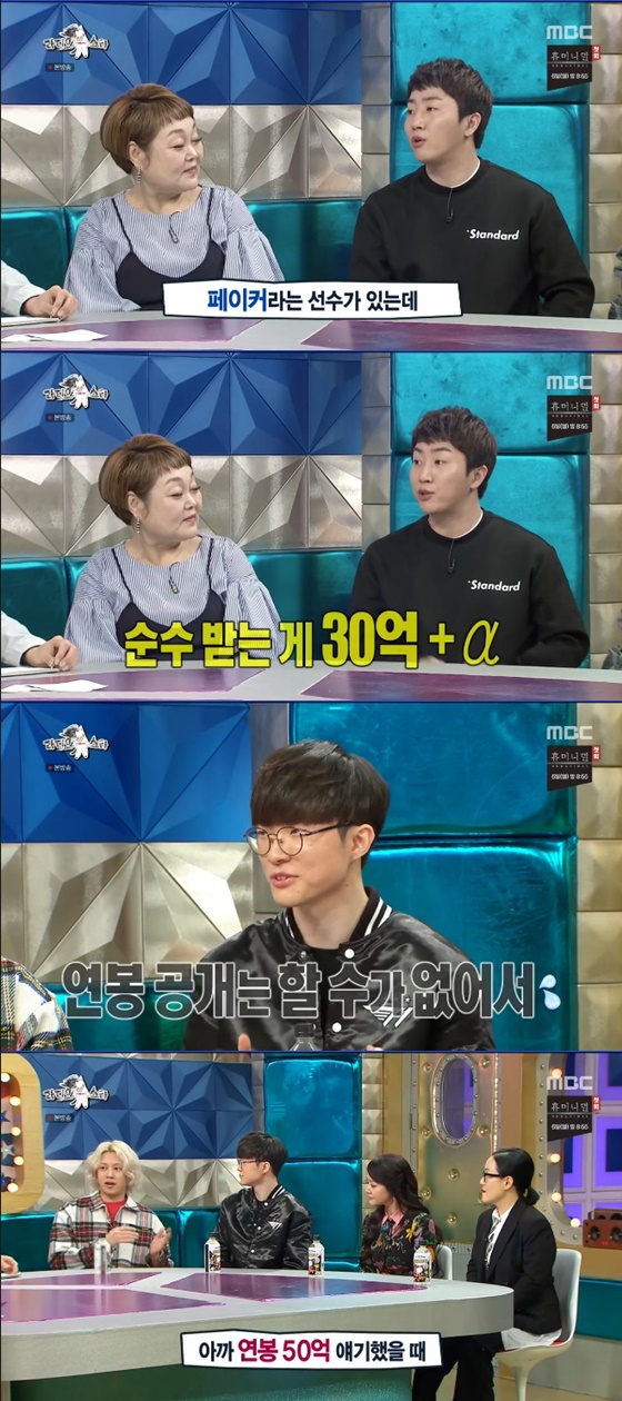 스페셜 MC 도티는 "어딜가도 페이커 선수가 항상 듣는 질문이 있다"라고 말문을 열었다. 이어 "홍진호가 '라디오스타'에서도 언급을 했었다. '연봉이 50억이라는 얘기'가 있다"고 덧붙였다. 페이커는 "저는 연봉 공개를 할 수가 없다. 그런 소문이 있더라"며 너스레를 떨었다.