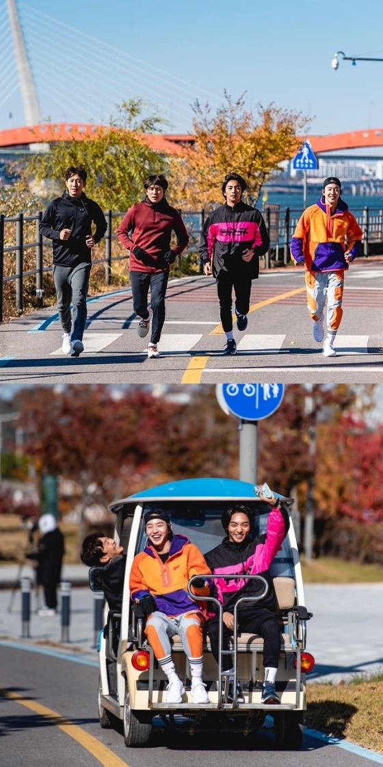 공개된 사진 속 강기영은 '런'에 함께 출연하는 배우 지성, 황희, 이태선과 함께 뛰고 있다. 특히 차에 앉아 서로 환하게 웃는 모습이 훈훈함을 보여준다.