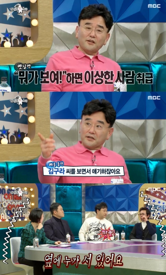 ▶김구라 씨가 연출된 상황이라 표현했는데 녹화 당시 진짜 조명이 저절로 꺼졌던 것이다. 그날 게스트가 모두 대단하신 분들이었는데, 기가 센 사람들이 모여있으면 기류에서 마찰이 일어난다. 그래서 조명이 꺼졌던 것 같다.