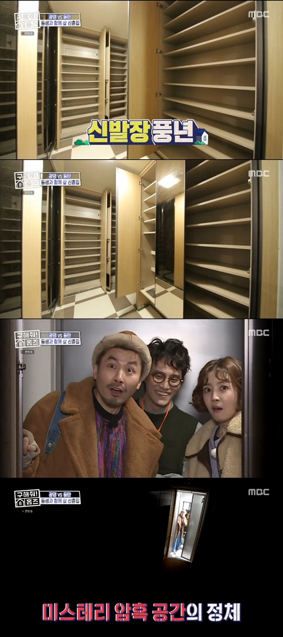 노홍철과 임성빈, 신다은은 현관에 들어서자마자 어마어마한 신발장 숫자에 경악을 금치 못했다. 노홍철은 "신발이 없어서 이사 못 오겠다"며 말했고 홍현희는 "제가 자주 가는 갈비집 수납장 같다"며 말해 웃음을 유발했다.