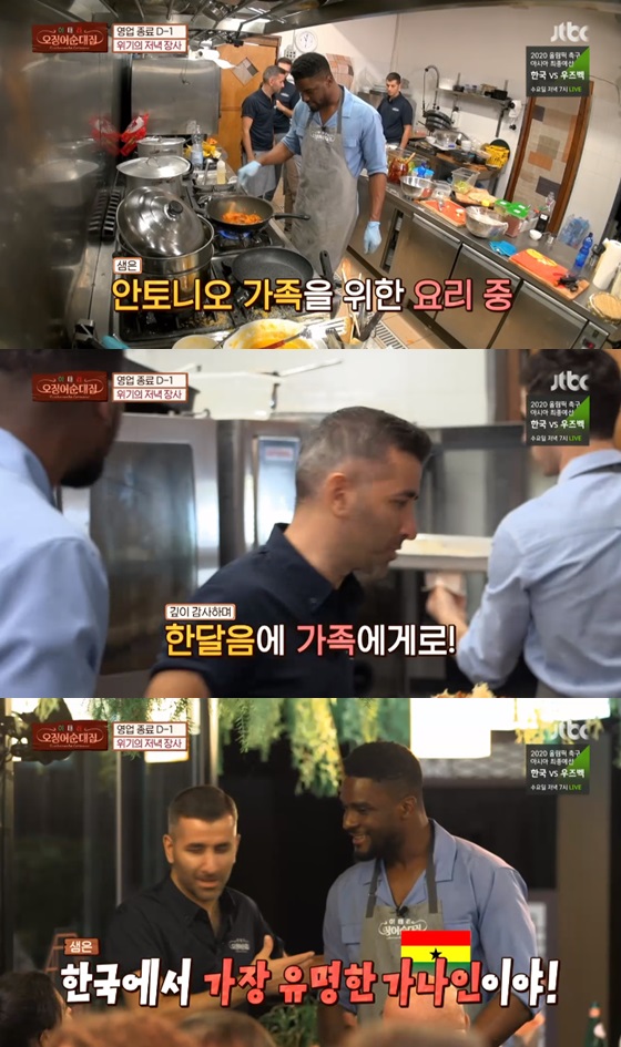 이날 방송에서 주문에 음식이 모두 나가고, 셰프들은 마무리를 하려고 했다. 그때 안토니오는 조용히 샘에게 다가가 "내 아내가 왔는데 문어국수 해줄 수 있냐. 장인이랑 같이 왔다"고 전했다.