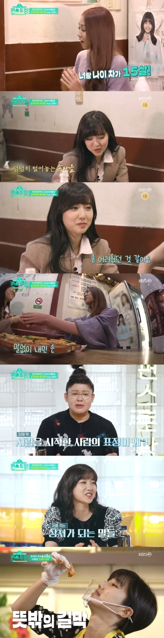 이영자는 이혜성에게 "이제 막 사랑을 시작한 사람이 왜 그러냐"라고 토닥였다.