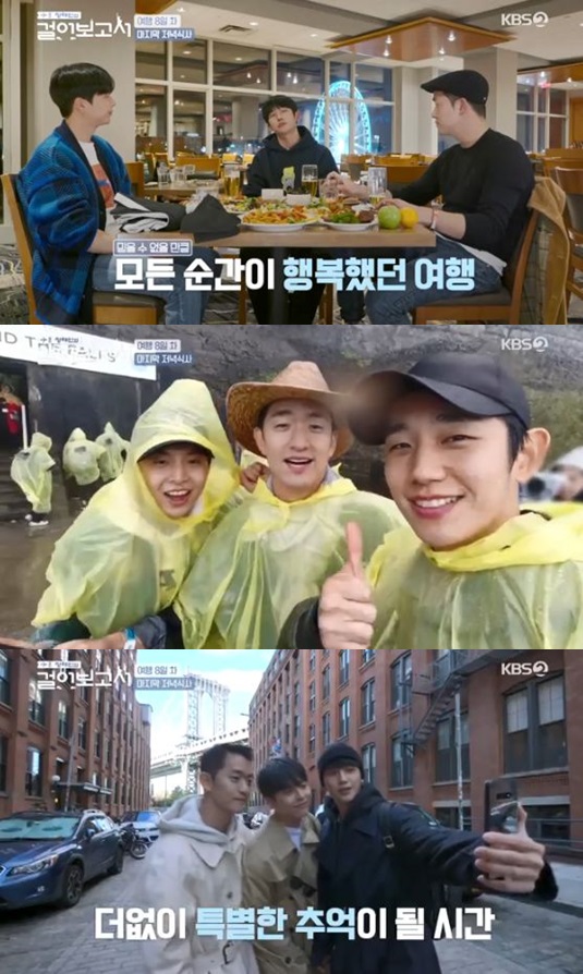KBS 2TV 예능프로그램 '정해인의 걸어보고서'가 배우 정해인과 함께 한 8일간의 여정을 마무리하며 유종의 미를 거뒀다. 이번 프로그램을 통해 신입 다큐멘터리 PD로 변신한 정해인은 카메라를 들고 미국 뉴욕부터 나이아가라 폭포까지 곳곳을 걸어 다니고 기록하며 매회 70분을 '힐링'의 시간으로 가득 채웠다.