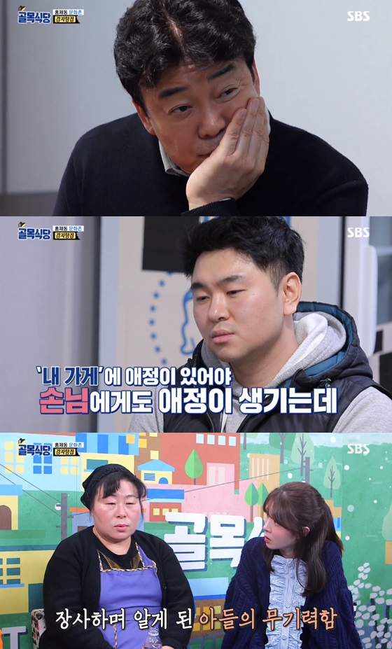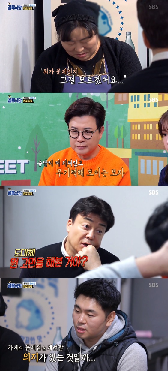 사실 요리의 맛보다 더 큰 문제는 바로 아들 사장의 무기력함이었다. 그는 손님이 등장해도 태블릿으로 영상을 보고 있거나, 요리할 때 건성건성 하는 등 장사에 집중하지 못하는 태도를 보여왔다. 백종원은 그에게 "이 가게의 이방인처럼 보인다. 대체 뭔 마음으로 여기에 앉아있고 요리를 하냐"라고 다그쳤다.