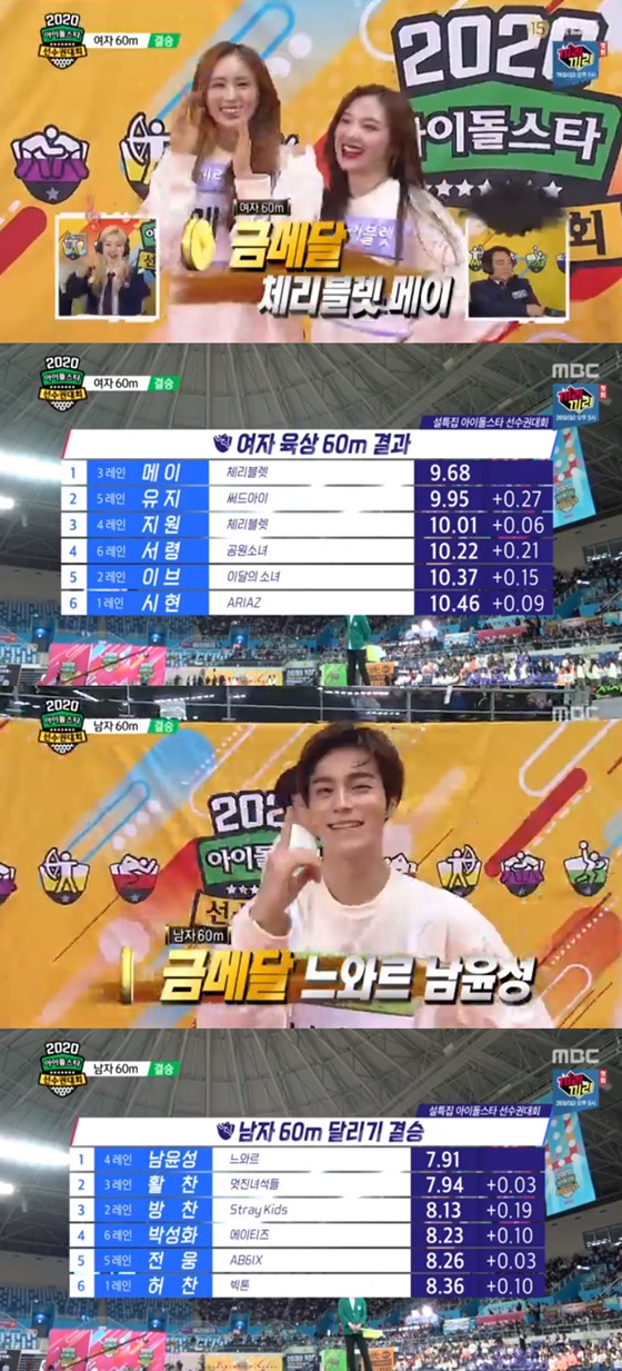 그룹 체리블렛 메이와 느와르의 남윤성이 남녀 육상 60m에서 각각 금메달의 주인공이 됐다.