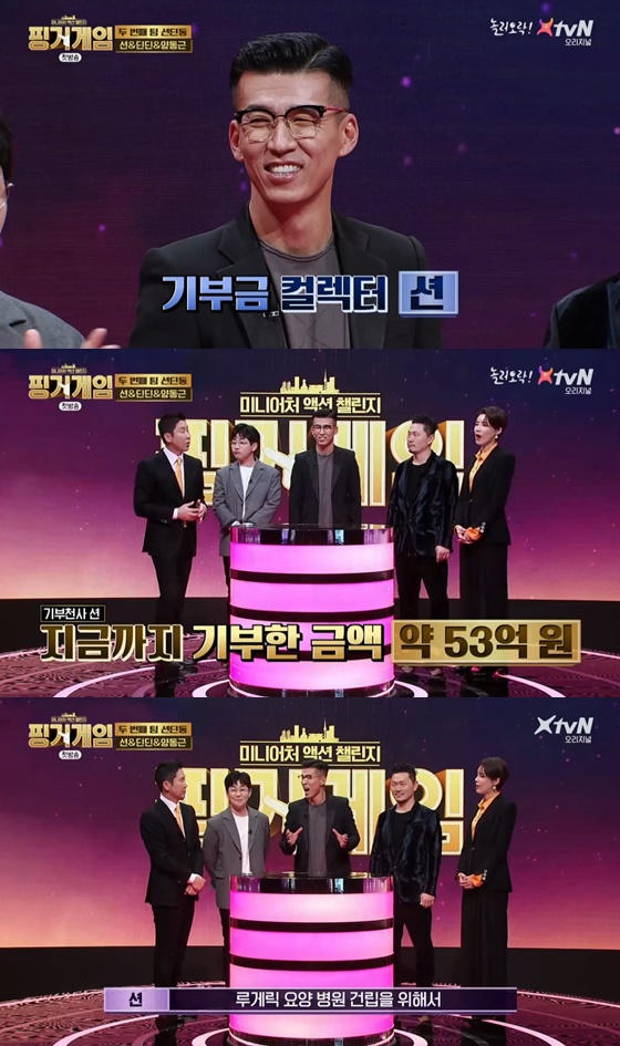 '핑거게임'에서 션이 "총 기부액이 '53억'이 넘는다"고 밝혔다.
