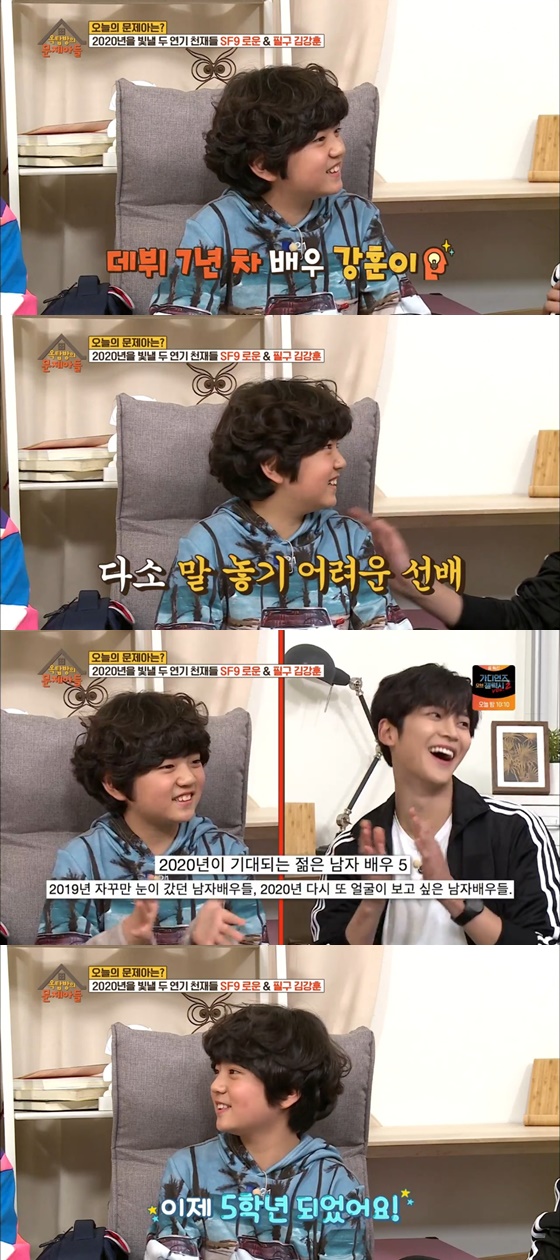 27일 오후 방송된 KBS 2TV 예능프로그램 '옥탑방의 문제아들'에서는 그룹SF9의 멤버 로운과 아역배우 김강훈이 출연했다. 이 자리에서 김강훈은 "연기학원을 한 번도 다녀본 적이 없다"고 밝혀 놀라움을 자아냈다.