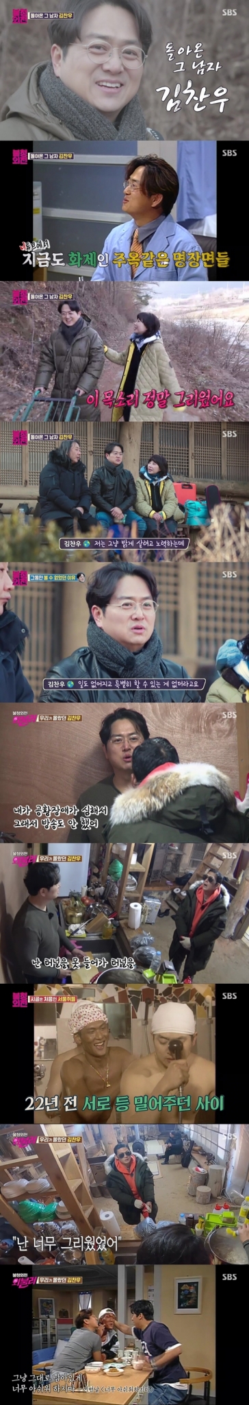 이날 정선 숙소에서 새 친구를 기다리고 있던 김혜림과 김도균은 김찬우를 보자끌어안으며 격한 환영을 했다. 20여년 전 함께 방송을 했던 김혜림은 김찬우에게 "하나도 안 변했다. 이 목소리 정말 그리웠다"며 진심으로 반가워했다. 김도균이 그동안의 근황을 묻자 김찬우는 "나이가 드니까 예전처럼 일거리도 없고 특별히 할 수 있는 게 없는 것 같다. 요즘은 유일한 낙이 동네 슈퍼 구경하는 거다"라며 소탈하게 털어놓았다. 또 "그냥 밝게 살려고 노력하는데, 한동안 개인사가 좀 있었다"고 밝혀 궁금증을 자아냈다.