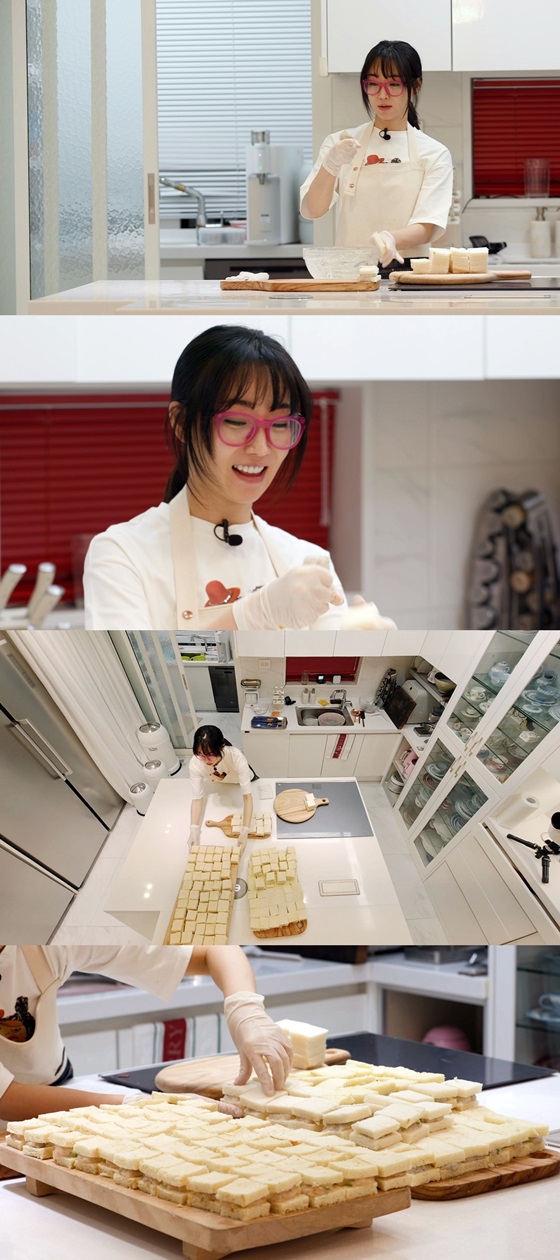 또한 평소 멘보샤를 자주 만들어 먹는다는 이유리는 엄청난 양의 택배 박스를 뜯어 거침없이 새우살을 다지기 시작했다. 다질 때마다 양이 줄어든다며 몇 번이고 새우살을 추가했고 "김장하듯이 해야 돼"를 중얼거리며 끊임없이 만들었다.