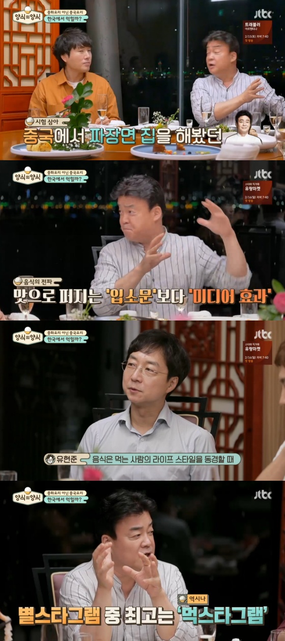 '양식의 양식'에서 백종원이 중국 내 한국식 짜장면의 인기를 전하며 미디어가 음식 문화에 끼치는 영향력이 크다는 생각을 밝혔다.